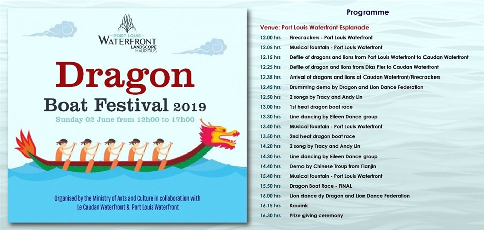 Dragon Boat Festival organised by the Ministry of Arts and Culture in collaboration with Le Caudan Waterfront and Port Louis Waterfront by Landscope Mauritius.