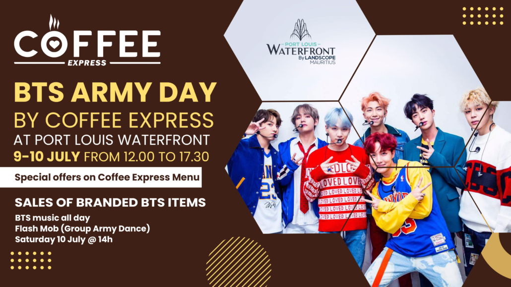 BTS Army Day By Coffee express at Port Louis Waterfront 9-10 July From 12:00 to 17:30