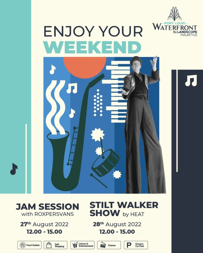 Rock your weekend at Port Louis Waterfront with our jamming session and meet the GIANTS of the stilt walker show