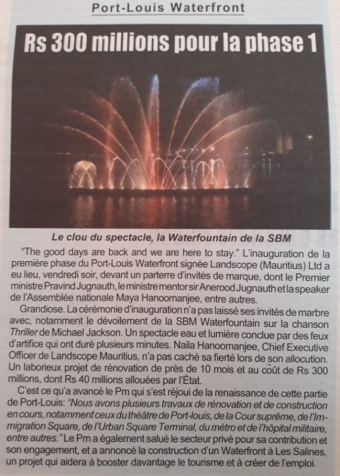 The official launch of the Port Louis Waterfront by Landscope Mauritius